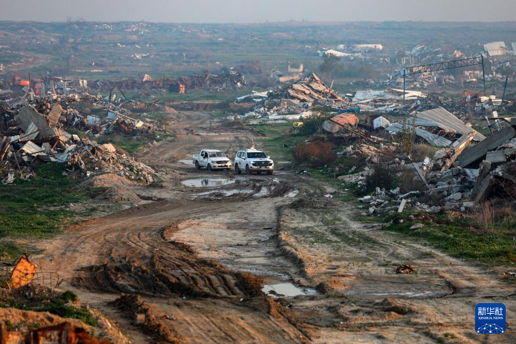 1月7日,在加沙城東南部的宰通社區(qū),紅十字國際委員會工作人員參與對加沙地帶最后一具以色列被扣押人員遺體的搜尋工作。新華社發(fā)(里澤克·阿卜杜勒賈瓦德攝)