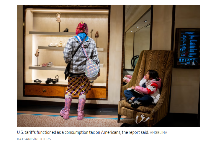 報(bào)告稱(chēng),美國(guó)關(guān)稅實(shí)際上相當(dāng)于對(duì)美國(guó)民眾征收消費(fèi)稅。路透社報(bào)道截圖