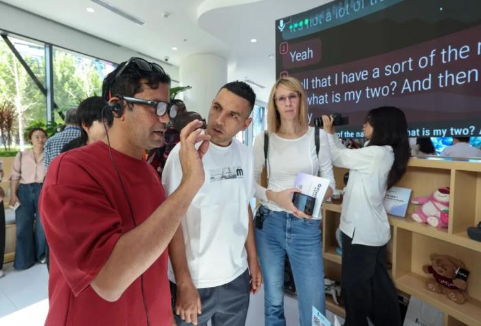 2025年9月29日,在“外國記者走進(jìn)北京”——經(jīng)開區(qū)專題推介活動上,外國記者佩戴自動翻譯眼鏡。中新社記者 賈天勇 攝