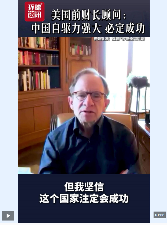近日,美國前財政部長顧問史蒂文·拉特納在接受美國播客節(jié)目《查理·羅斯全球對話》時表示,近20年來中國經(jīng)濟的高速發(fā)展不僅源于經(jīng)濟因素,更得益于中國人民追求成功的強大自驅力。他指出,這種難以用經(jīng)濟模型量化的拼搏精神深刻塑造了國家的經(jīng)濟前景,并認為中國必定會成功。