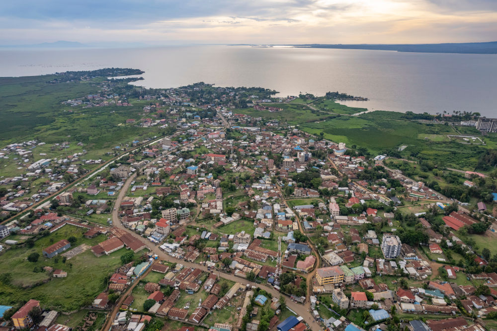 這是肯尼亞基蘇木與維多利亞湖景觀(無人機照片,2026年2月27日攝)。