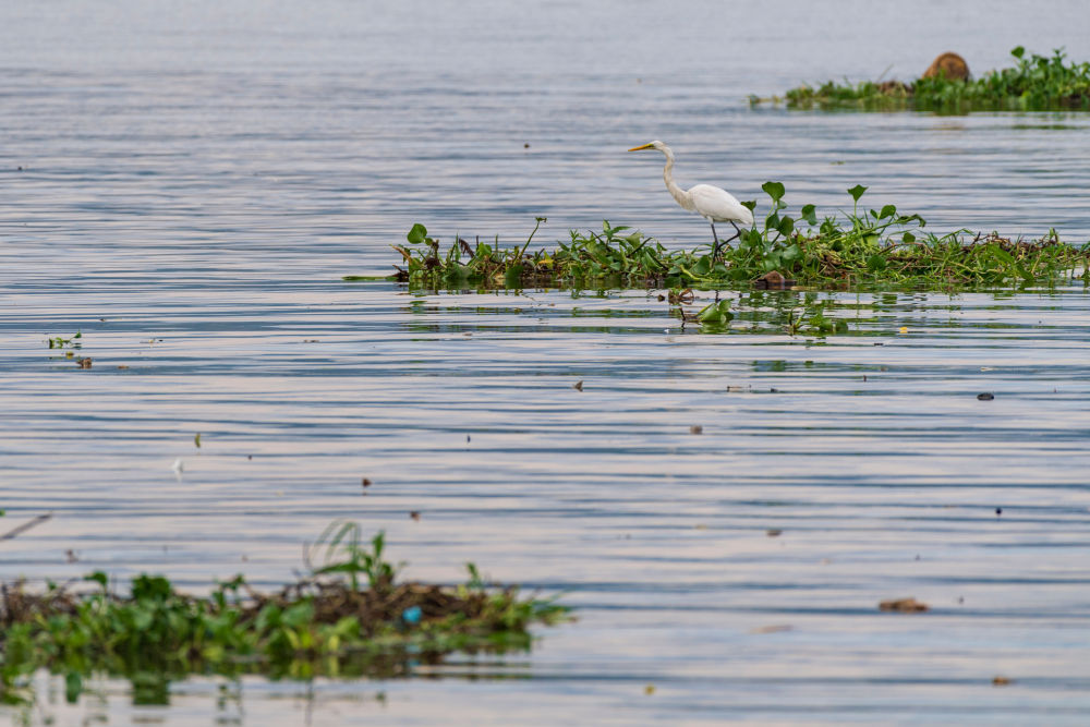 在肯尼亞基蘇木,一只白鷺在維多利亞湖上憩息(2026年2月27日攝)。