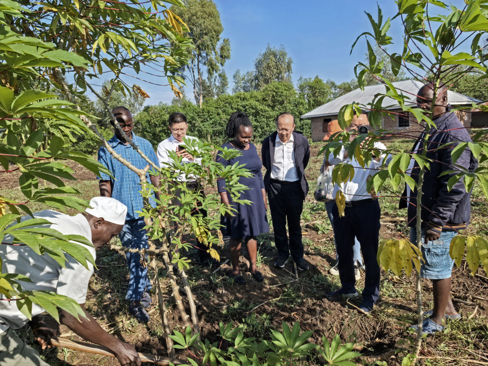 中方專家在維多利亞湖區(qū)考察當?shù)鼐G色農(nóng)作物的種植情況(2024年8月27日攝)。