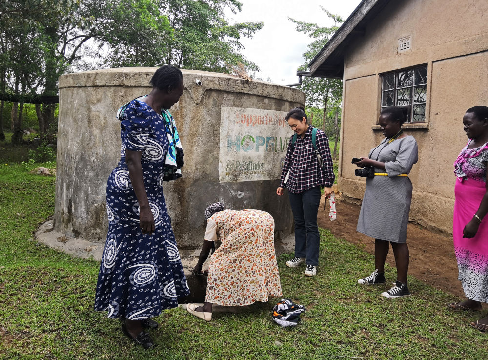 中方專家在維多利亞湖區(qū)考察當?shù)赜晁占玫那闆r(2019年12月9日攝)。