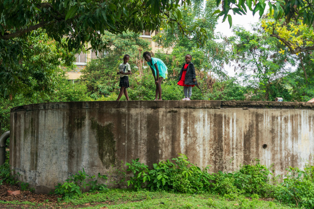 在維多利亞湖畔的肯尼亞霍馬灣,小朋友在一處儲水設(shè)施上玩耍(2026年3月1日攝)。