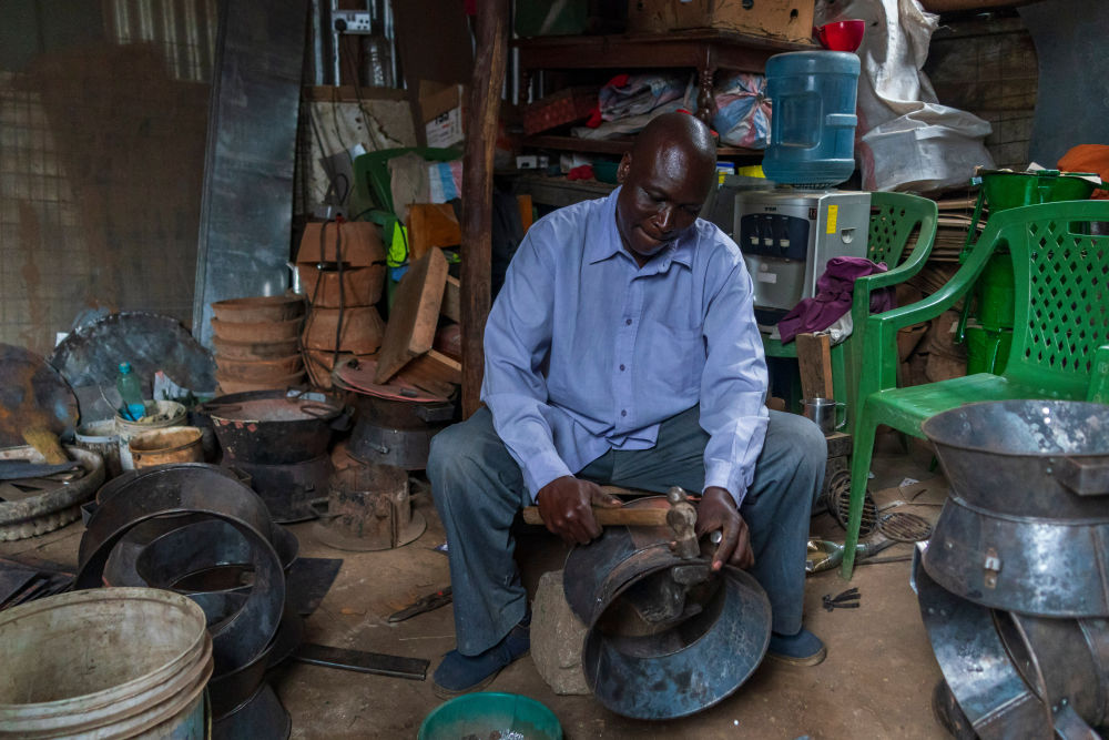 在維多利亞湖畔的肯尼亞基蘇木,商家制作陶土爐灶的金屬外殼(2026年2月28日攝)。這種清潔爐灶的制作原料取自非洲當?shù)?,工藝簡單?/p>