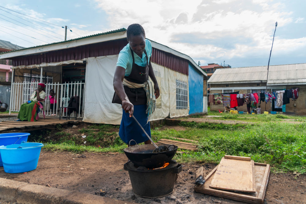 在維多利亞湖畔的肯尼亞基蘇木,當?shù)鼐用裼锰胀翣t灶做飯(2026年2月28日攝)。