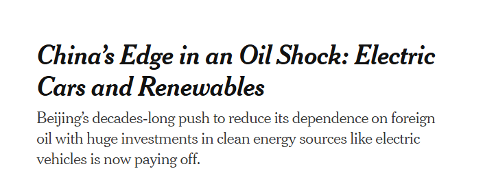 面對中東戰(zhàn)事外溢沖擊全球能源市場這一議題,《紐約時報》近日報道指出,在全球主要工業(yè)國紛紛陷入能源焦慮之際,中國通過數(shù)十年來大力投資電動汽車和可再生能源,構(gòu)建起真正意義上的能源抗壓屏障。