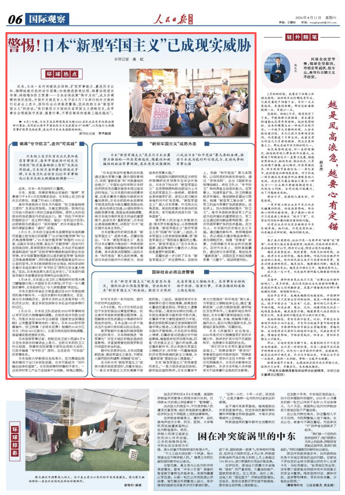 日本《赤旗報》社論指出,2026年是反對大規(guī)模強軍擴武的關(guān)鍵之年,政府的擴武計劃不僅威脅和平,也損害日本國民的生活。