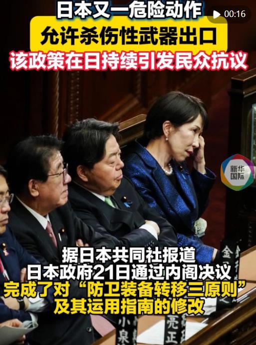 據(jù)日本共同社報(bào)道,日本政府21日通過內(nèi)閣決議,完成了對(duì)“防衛(wèi)裝備轉(zhuǎn)移三原則”及其運(yùn)用指南的修改,原則上將允許殺傷性武器對(duì)外出口。