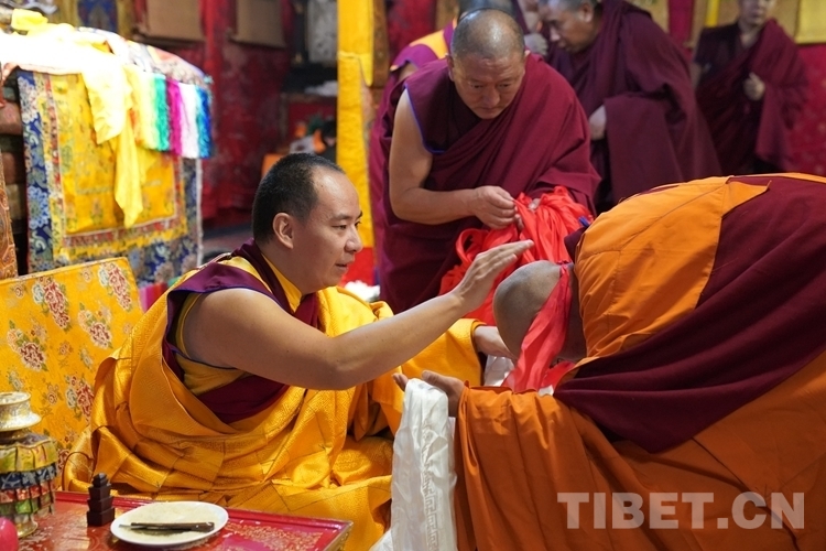 中國西藏網(wǎng)訊 11月4日,即藏歷九月二十二日是藏傳佛教傳統(tǒng)的“降神節(jié)”,降神節(jié)藏語稱“拉波堆慶”。在這特殊的日子里,全國政協(xié)常委、中國佛教協(xié)會副會長、中國佛協(xié)西藏分會會長班禪額爾德尼·確吉杰布,為日喀則市江孜縣重孜寺生欽·旦巴熱杰活佛授予比丘戒暨為扎什倫布寺部分年輕僧人傳授沙彌戒儀式在扎什倫布寺拉讓殿舉行。