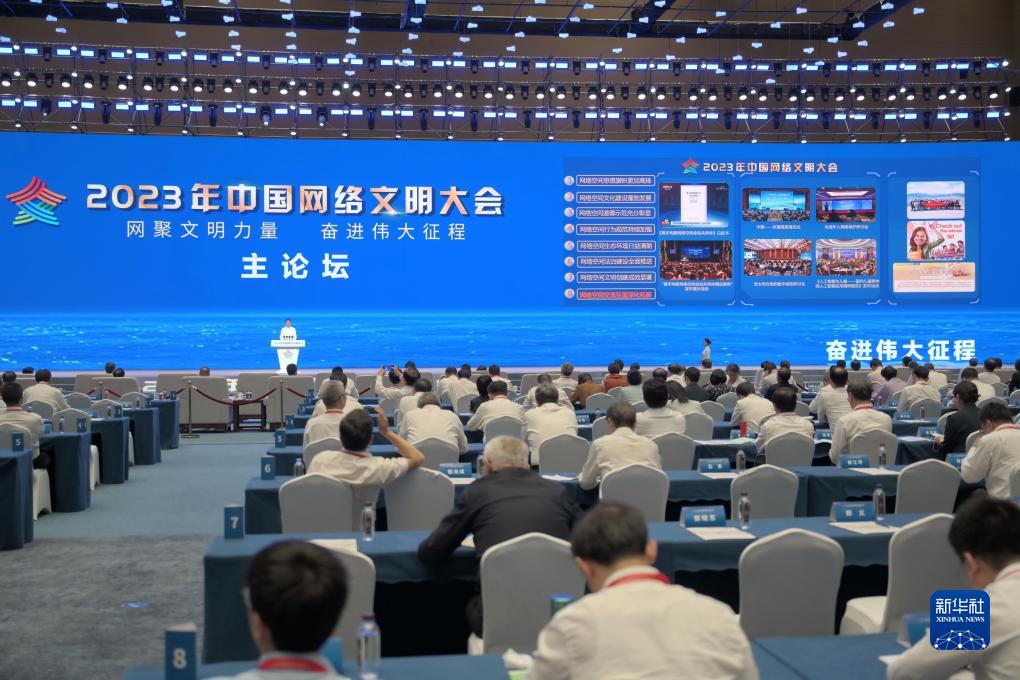 7月18日,2023年中國網(wǎng)絡(luò)文明大會主論壇發(fā)布《中國網(wǎng)絡(luò)文明發(fā)展報告2023》。新華社記者林善傳攝