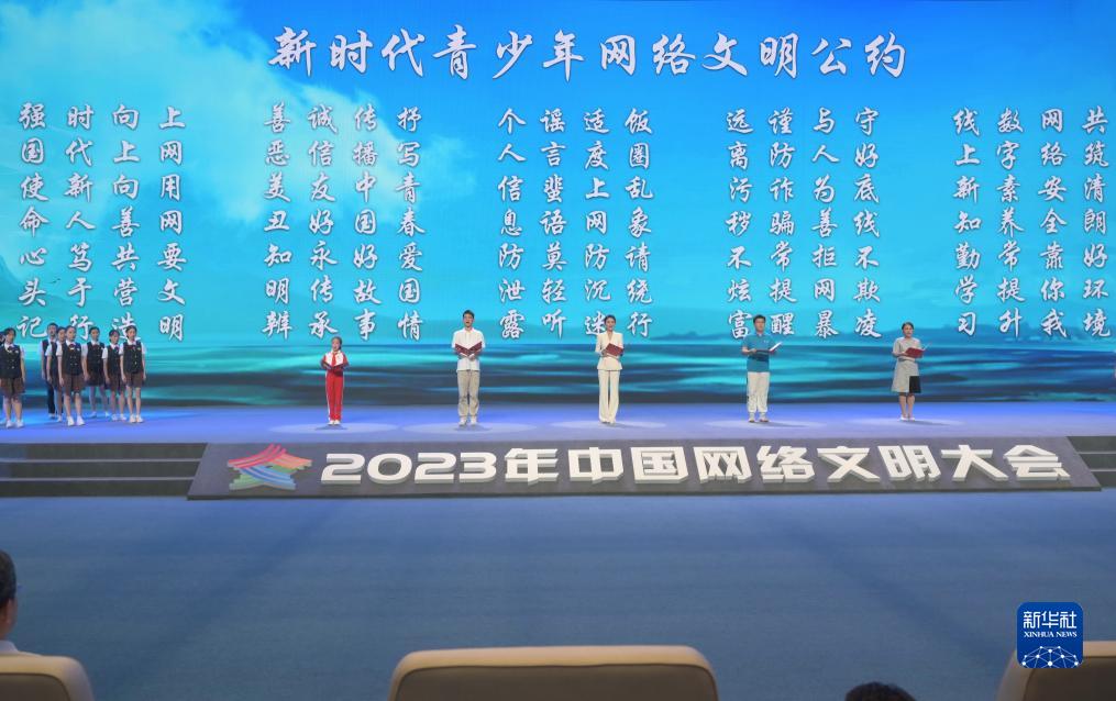 7月18日,2023年中國網(wǎng)絡(luò)文明大會主論壇發(fā)布《新時代青少年網(wǎng)絡(luò)文明公約》。新華社記者林善傳攝