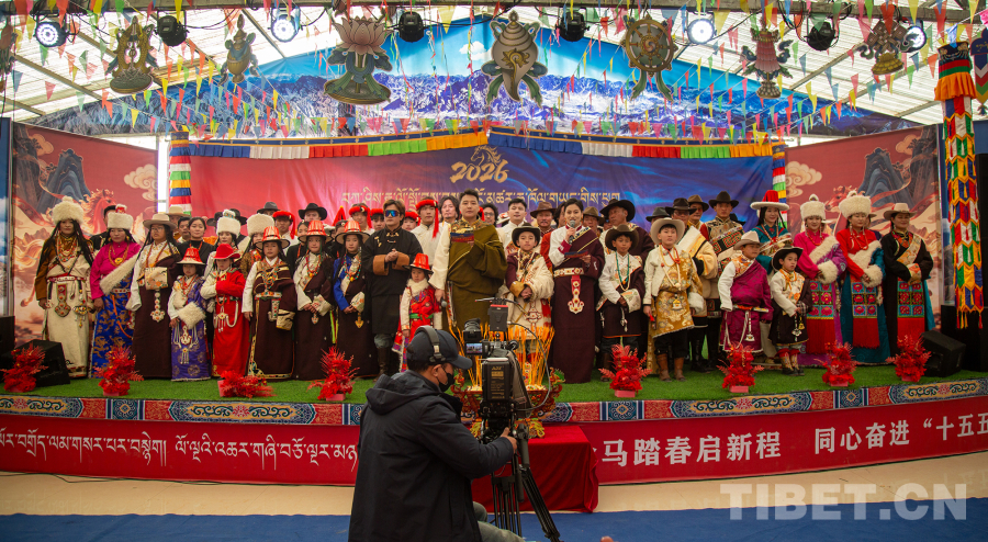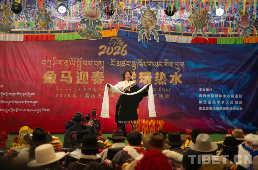 中國西藏網(wǎng)訊 1月16日至17日,在2026年藏歷火馬新年來臨之際,一場主題為“金馬迎春·祥瑞熱水”的藏歷新年晚會在青海省海西蒙古族藏族自治州都蘭縣熱水鄉(xiāng)賽什堂村舉辦并完成錄制。晚會由海西州融媒體中心聯(lián)合熱水鄉(xiāng)黨委、政府及都蘭縣賽瓊鍋莊藏族諺語協(xié)會共同打造,所有節(jié)目均取材于當?shù)剞r(nóng)牧民生活與藝術(shù)傳統(tǒng),生動展現(xiàn)了新時代農(nóng)牧民的精神風(fēng)貌與文化自信。