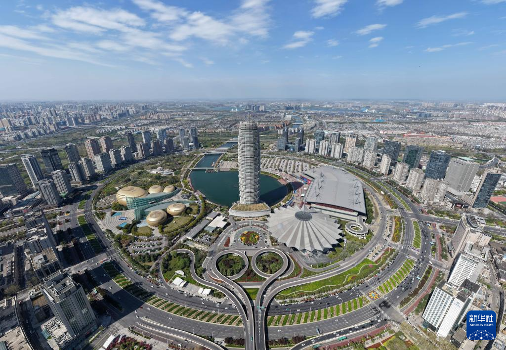 這是3月28日拍攝的河南省鄭州市鄭東新區(qū)中央商務區(qū)(無人機照片)。新華社記者 李嘉南 攝