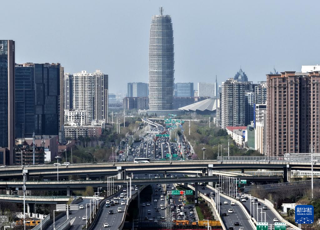 這是3月28日拍攝的河南省鄭州市中州大道(無人機照片)。新華社記者 李嘉南 攝