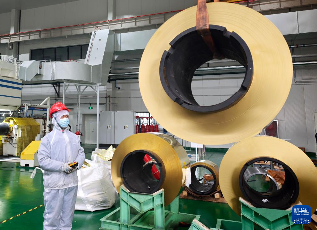 3月19日,工作人員在河南三門峽市靈寶金源礦業(yè)股份有限公司朝輝銅業(yè)箔軋車間進行吊裝作業(yè)。新華社發(fā)(肖洋 攝)