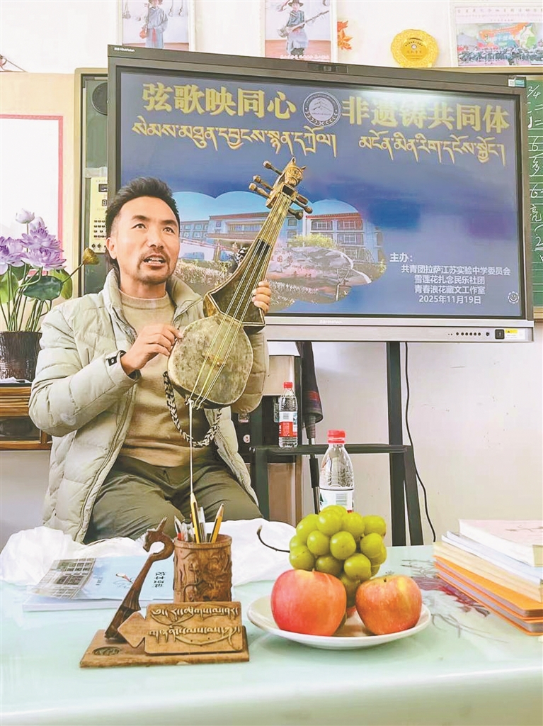 校本課程傳承文脈?!氨緦W(xué)期我們開設(shè)了54門校本課程?!辈苄∶犯嬖V記者,“比如漆畫課,孩子們把藏族紋飾和漢族繪畫技法融合在一起;扎念琴彈唱課上,老師引導(dǎo)學(xué)生把身邊的故事編成歌詞來唱。孩子們在動手實(shí)踐中,自然就體會到中華文化的博大精深,也增強(qiáng)了對自己民族文化的認(rèn)同感和自豪感?!蹦壳埃瑢W(xué)校已有3名學(xué)生成為西藏自治區(qū)藏戲傳承人。