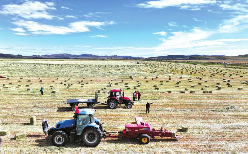 飼草收割。紅原縣委宣傳部供圖