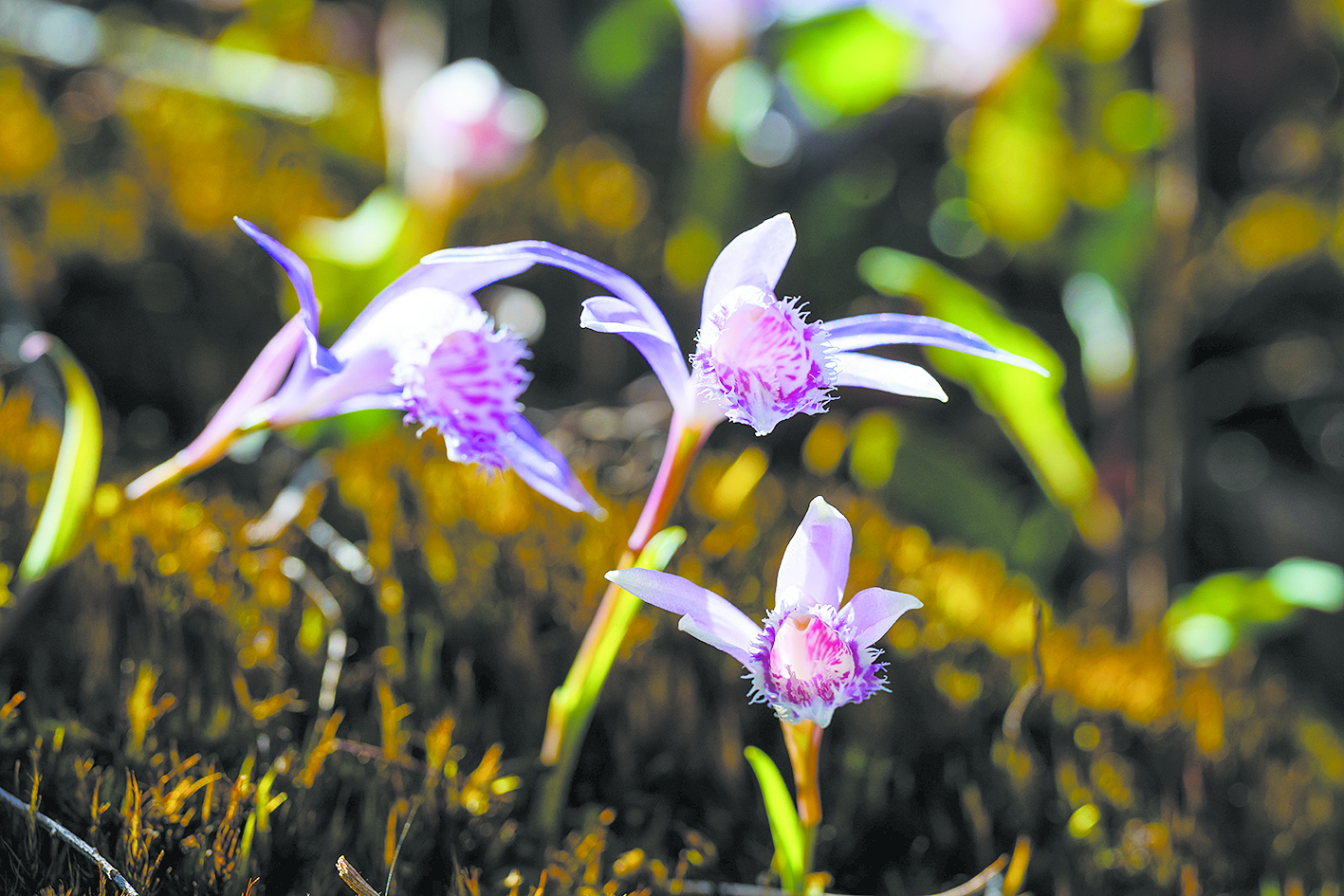 漫山淡紫凝香、花形奇絕的花朵綻放在苔蘚巖壁與腐殖沃土間,被譽(yù)為“高山蘭花仙子”,美不勝收。