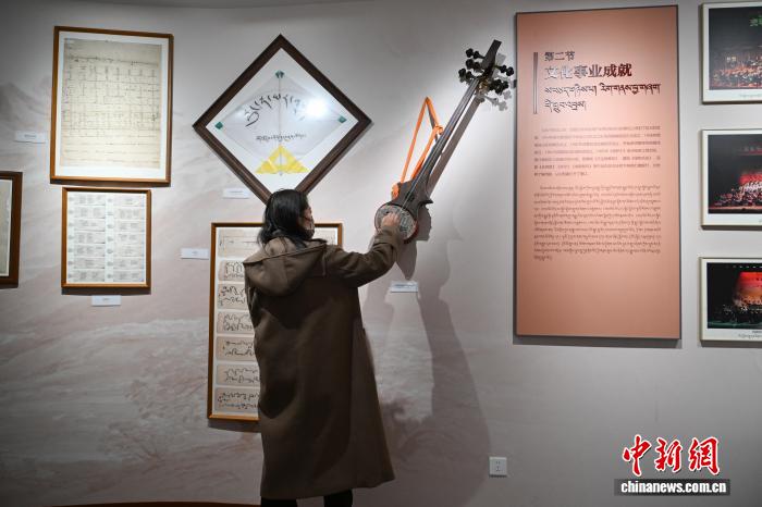 4月28日,記者實(shí)地探訪西藏藏語(yǔ)言文字館,該館是全中國(guó)首個(gè)藏語(yǔ)言文字專題展館。展館共設(shè)藏語(yǔ)言文字的起源與演變、藏語(yǔ)言文字的學(xué)習(xí)和使用、藏語(yǔ)言文字的傳承與保護(hù)3大部分10個(gè)板塊,目前館藏珍貴展品3000余件。圖為市民在參觀西藏藏語(yǔ)言文字館。中新社記者 貢嘎來(lái)松 攝