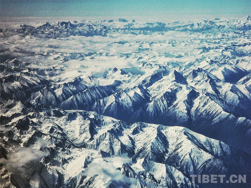 圖為飛機(jī)上所拍攝到的雪山 攝影:歐帆