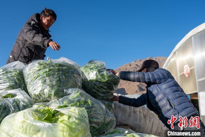 1月28日上午,航拍西藏日喀則珠峰現(xiàn)代農(nóng)業(yè)科技創(chuàng)新博覽園蔬菜大棚。圖為當(dāng)?shù)剞r(nóng)牧民轉(zhuǎn)運(yùn)剛采摘的大棚蔬菜前往日喀則市區(qū)。[詳細(xì)]
