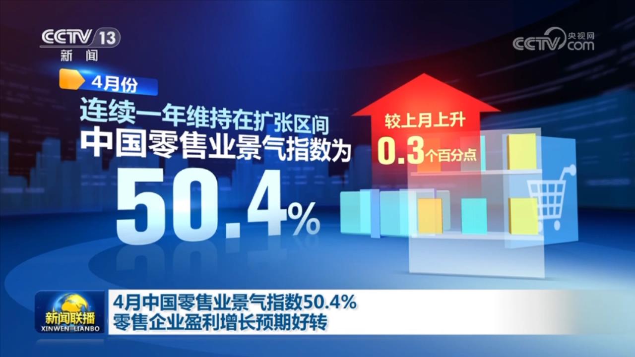 中國商業(yè)聯(lián)合會最新發(fā)布的中國零售業(yè)景氣指數(shù)顯示,4月份,中國零售業(yè)景氣指數(shù)為50.4%,較上月上升0.3個百分點,連續(xù)一年維持在擴(kuò)張區(qū)間。從行業(yè)分類看,商品經(jīng)營類指數(shù)、租賃經(jīng)營類指數(shù)、電商經(jīng)營類指數(shù),較上月均有上升。