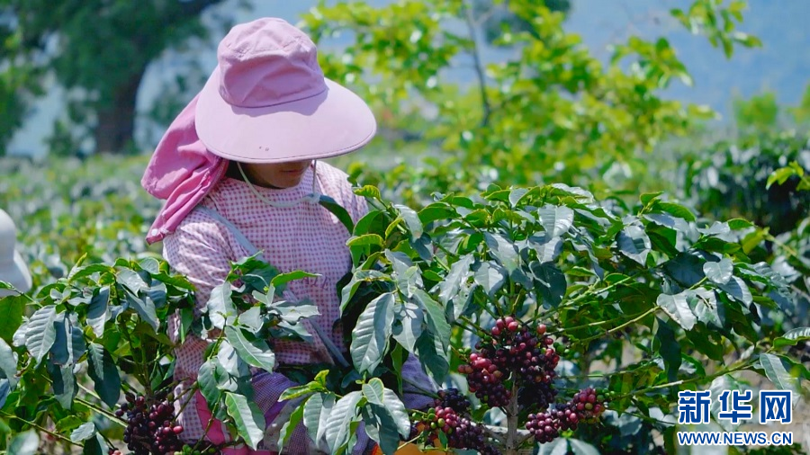 咖農(nóng)采摘咖啡鮮果(資料圖)。新華網(wǎng)發(fā)(保山市委宣傳部 供圖)