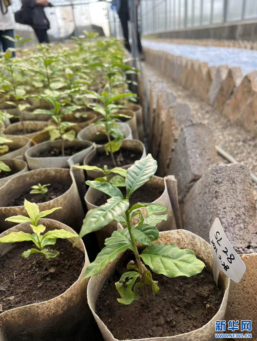 山頂一號(hào)咖啡莊園自行培育的咖啡苗(4月2日攝)。新華網(wǎng) 楊楨宇 攝
