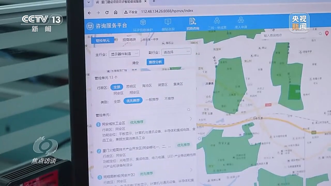 福建廈門市生態(tài)環(huán)境局環(huán)評處處長 詹源:我們在系統(tǒng)里面融入了國土空間、市政設(shè)施、產(chǎn)業(yè)布局以及生態(tài)環(huán)境,一共有207個矢量圖層,在這里面可以查看到空間信息、污水管網(wǎng)設(shè)置、產(chǎn)業(yè)布局規(guī)劃等信息。同時,我們還梳理了10萬多條準(zhǔn)入條件,形成了分區(qū)管控的智慧內(nèi)核。