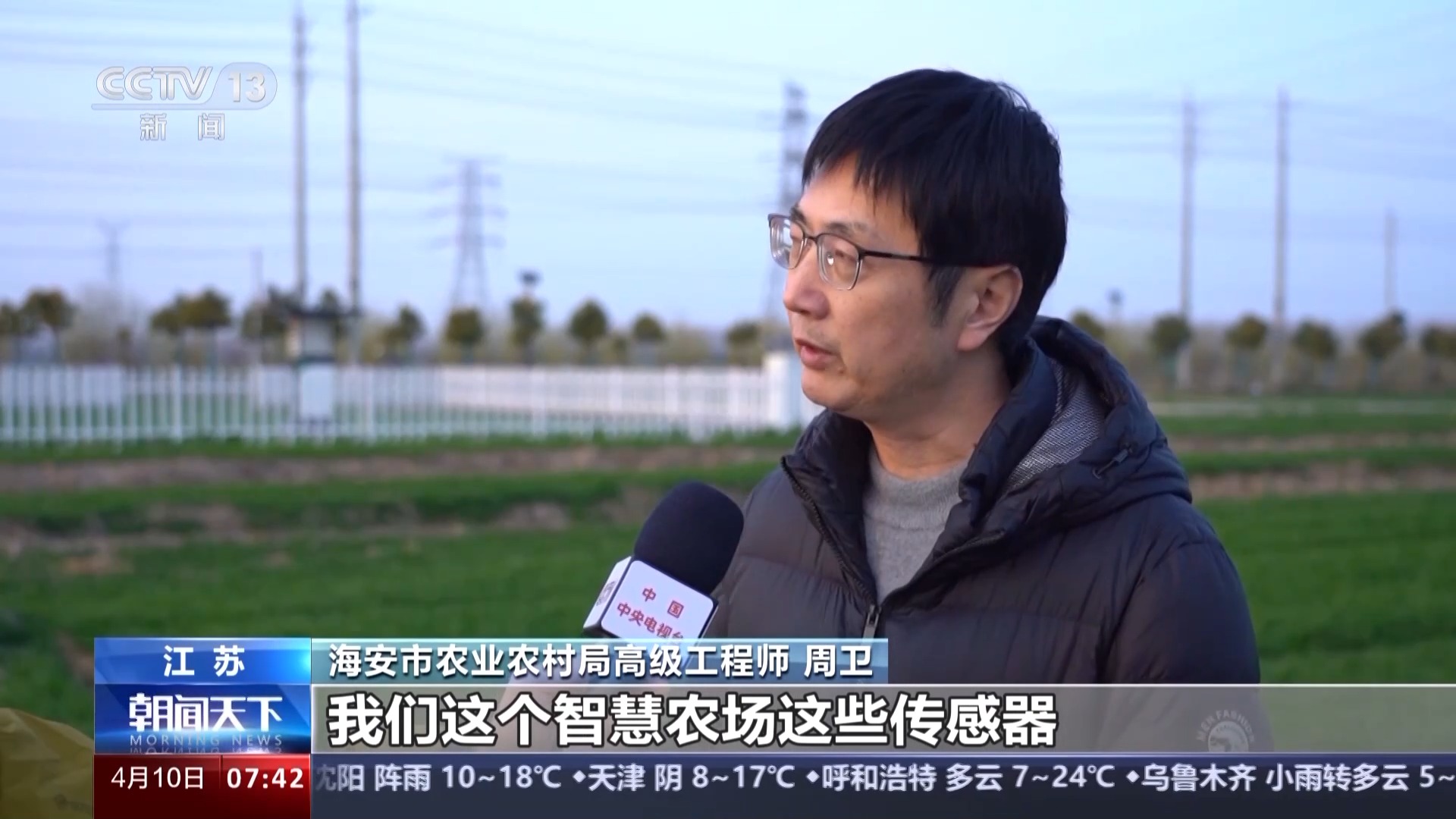 海安市農(nóng)業(yè)農(nóng)村局高級(jí)工程師 周衛(wèi):國家就把整個(gè)渠道、道路、灌溉系統(tǒng)修好,我們這個(gè)智慧農(nóng)場這些傳感器基本上都是國家補(bǔ)貼的。