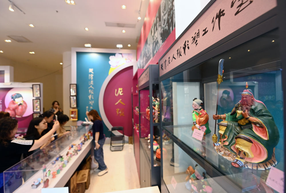 游客在位于天津五大道的一家“泥人張”店鋪內(nèi)選購(gòu)(4月13日攝)。