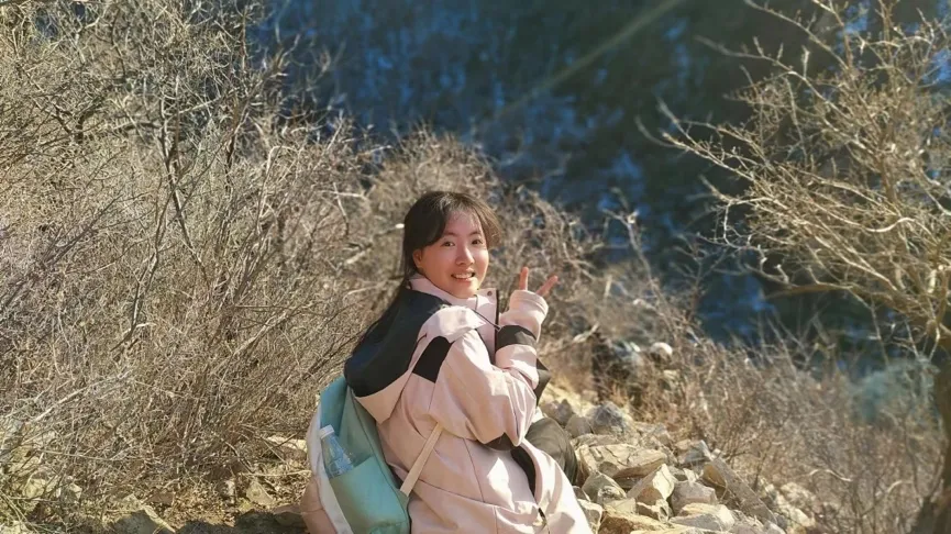 袁知秋在戶外徒步旅行