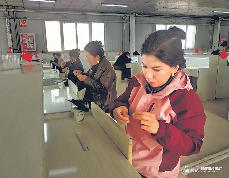 該公司負責(zé)人迪麗達爾·克依木說:“這個月我們有個100萬元的訂單,工人正加班加點生產(chǎn)。”