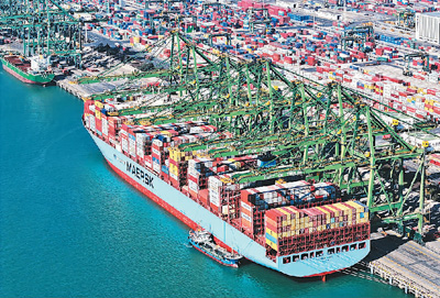 貨輪靠泊在天津港北航道內(nèi)的泊位中。新華社記者 趙子碩攝