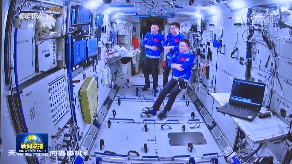 正在空間站執(zhí)行任務(wù)的神舟十七號(hào)乘組在軌觀看神舟十八號(hào)載人飛行任務(wù)新聞發(fā)布會(huì)和記者見(jiàn)面會(huì)。