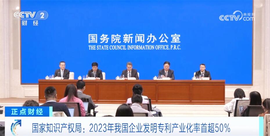 記者4月24日從國際知識產權局了解到,2023年,我國企業(yè)發(fā)明專利產業(yè)化率首次超過50%,來看報道。