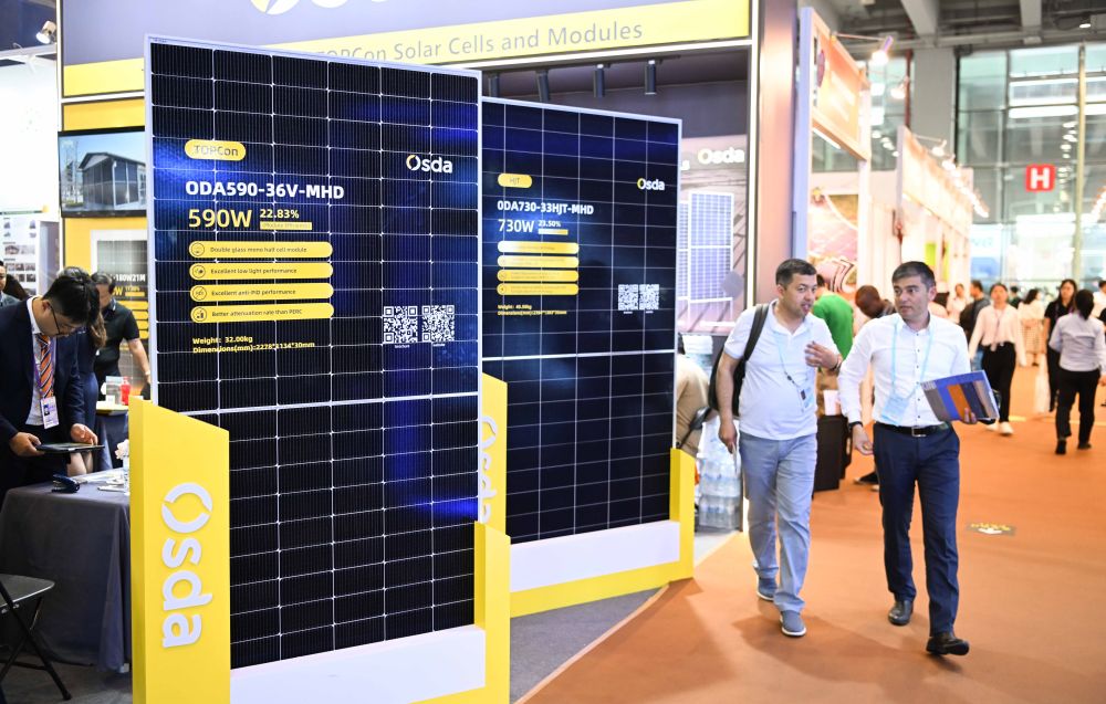 在創(chuàng)維公司的展廳,眾多客商圍觀一款可以由直面屏變?yōu)榍嫫恋淖冃坞娨?。除家電外,公司還專設(shè)新能源光伏的展區(qū)。創(chuàng)維公關(guān)負(fù)責(zé)人孫妮介紹說:“四年內(nèi),創(chuàng)維新能源業(yè)務(wù)從無到有,目前達(dá)到約234億元的規(guī)模?!泵鎸?duì)全球光伏及儲(chǔ)能領(lǐng)域的巨大市場(chǎng)機(jī)遇,創(chuàng)維集團(tuán)積極推進(jìn)新能源業(yè)務(wù)出海,現(xiàn)已布局到澳大利亞、墨西哥、南非等27個(gè)國(guó)家和地區(qū)。