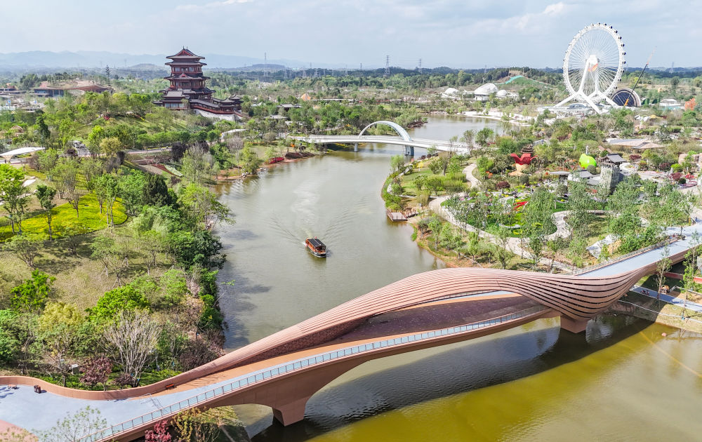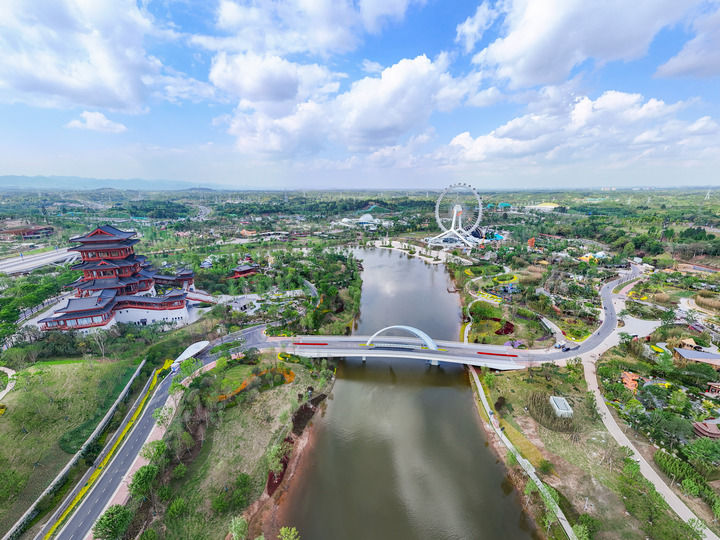 這是2024年4月23日拍攝的成都世園會郫都分會場(無人機照片)。新華社記者 王曦 攝