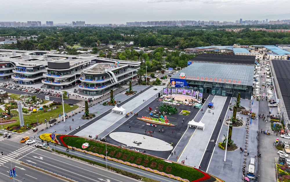 這是成都世園會主會場入口(無人機照片,2024年4月14日攝)。新華社記者 江宏景 攝