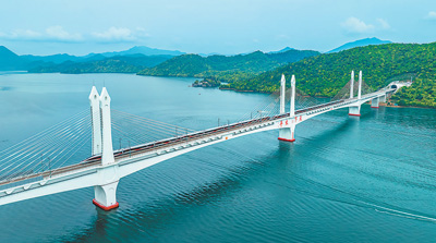 圖為4月26日,復(fù)興號(hào)智能動(dòng)車組列車駛過(guò)池黃高鐵太平湖特大橋。王 磊攝(人民視覺(jué))