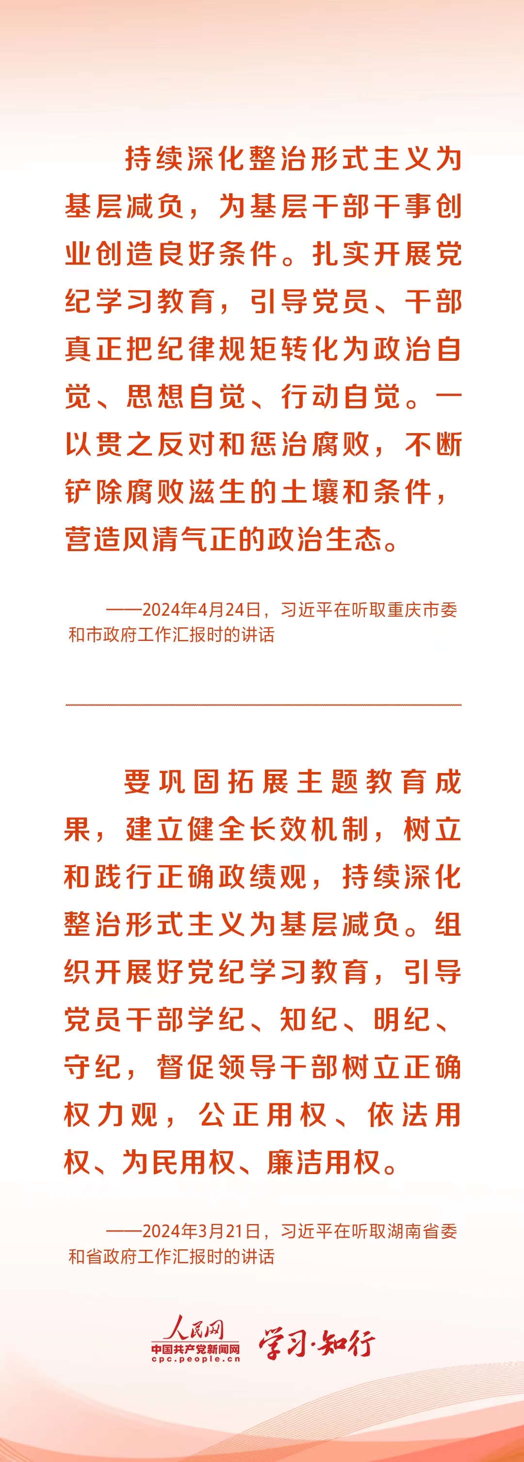在新時(shí)代推動(dòng)西部大開(kāi)發(fā)座談會(huì)上,習(xí)近平再次明確,“鞏固拓展主題教育成果,抓好黨紀(jì)學(xué)習(xí)教育,持續(xù)整治形式主義為基層減負(fù)。”