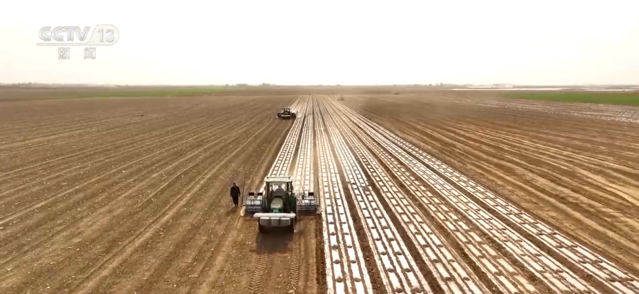 在新疆昌吉州,當(dāng)?shù)?024年采用4.4米超寬膜播種方式和一膜十二行播種新技術(shù),實現(xiàn)了膜眼不易錯位、播種深度可控,有效保證出苗率。