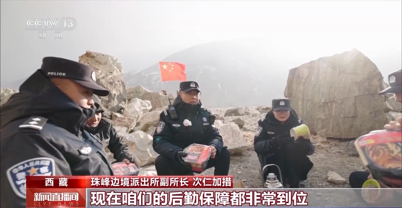 珠峰邊境派出所副所長 次仁加措:這里風(fēng)是挺大的。但咱們有“法寶”,就是高原上的火鍋。現(xiàn)在后勤保障非常到位,在野外哪個地方,吃頓熱乎飯已經(jīng)不是難事了。