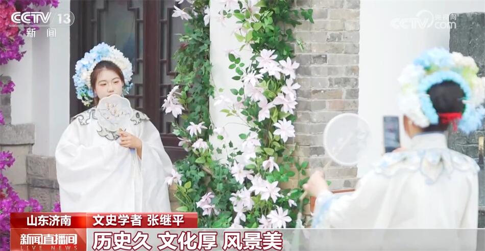 文史學(xué)者張繼平介紹:“唐宋八大家之一曾鞏先生把大明湖,現(xiàn)在叫大明湖,過去叫西湖,他把西湖的淤泥疏浚,疏浚之后就修了一道堤壩,叫百花堤,然后有百花臺。說起百花洲,有18個字可以概括它的特點(diǎn),歷史久、文化厚、風(fēng)景美、特色濃、故事多、煙火旺。歷代的文人墨客來到了百花洲附近,留下了大量贊美百花洲的詩篇。”
