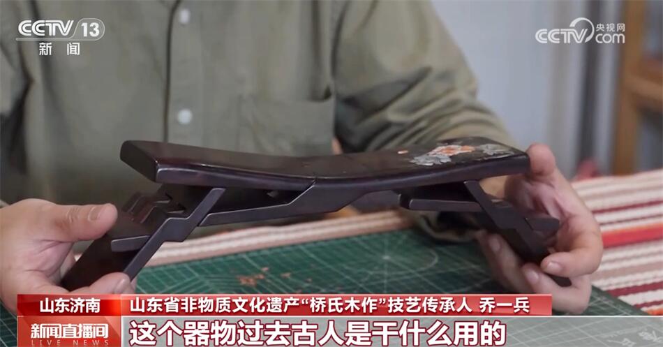 山東省非物質(zhì)文化遺產(chǎn)“橋氏木作”技藝傳承人喬一兵介紹:“它本身是一整塊木頭六個面,通過鋸和鑿形成一個器物。這個器物過去古人是干什么用的?當(dāng)枕頭用的,也可以當(dāng)?shù)首佑?,它最大的特點(diǎn)是可以折疊,攜帶非常方便,傳說是魯班發(fā)明的。和眾多的優(yōu)秀的傳統(tǒng)技藝一樣,它深層次代表的是中國的一些思想、一些哲學(xué)、一些文化在里邊,魯班枕的核心是平衡和和諧,我覺得我很有必要把它傳承下來,發(fā)揚(yáng)光大。”