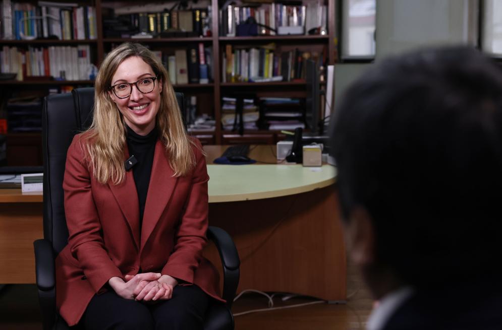 2024年1月8日,戴高樂將軍的曾孫女納塔莉·戴高樂在法國巴黎接受新華社記者專訪。新華社記者高靜 攝