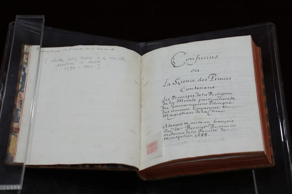 2024年1月28日典藏于中國國家圖書館中的法國國禮《論語導讀》(資料照片)。新華社記者張爽 攝
