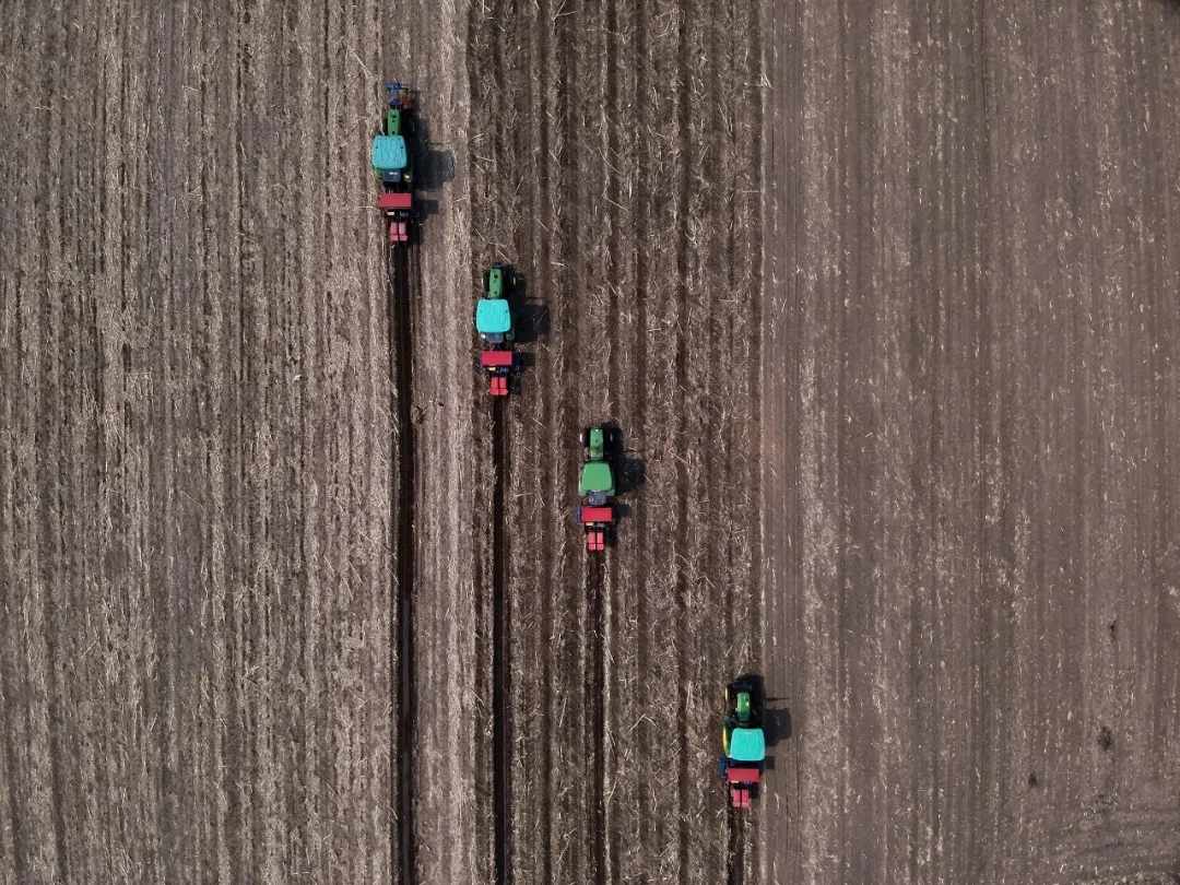 梨樹縣蔡家鎮(zhèn)敬友村誠農(nóng)農(nóng)機(jī)農(nóng)民專業(yè)合作社的社員們駕駛大型智慧化播種機(jī)播種玉米。隨著天氣逐漸轉(zhuǎn)暖,梨樹縣大田播種逐漸拉開帷幕。據(jù)了解,2024年梨樹縣春播農(nóng)作物種植計劃393.9萬畝,其中,玉米339萬畝、大豆17萬畝、水稻10.04萬畝、薯類2.8萬畝、其他農(nóng)作物播種25.06萬畝。郭敢峰 本報記者錢文波 攝